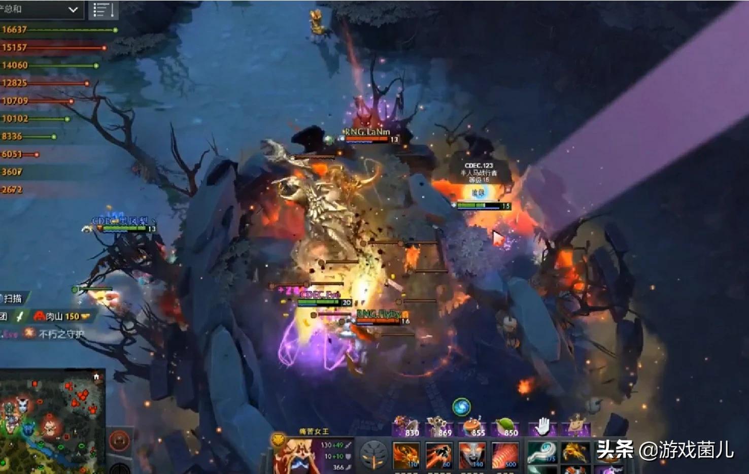 RNG掏出了电狗,而CDEC则选择了四号位火女,在对线上几乎完美碾压了RNG的暗影萨满。游戏前中期RNG与CDEC你来我往,经济差以及优劣势的转换并没有拉开。而让胜利天平倾向CDEC的,则是28分钟的肉山决战,虽然RNG击杀了CDEC众人,但不朽盾却被拍拍拿到。