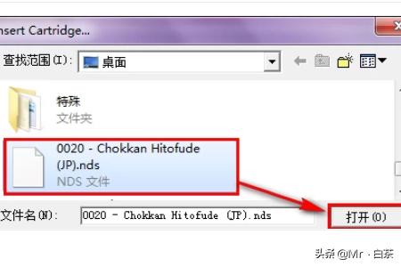 2、在弹出的对话框上,找到并双击已经下载好的nds文件,或者选择nds文件后,选择“打开”。