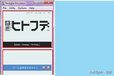 3、如下图所示的No$GBA界面,Nds的上屏即为下面界面的上半部分,下屏即为下面界面的下半部分,在NDS上使用鼠标在下屏上滑动,以代替手写笔的作用。