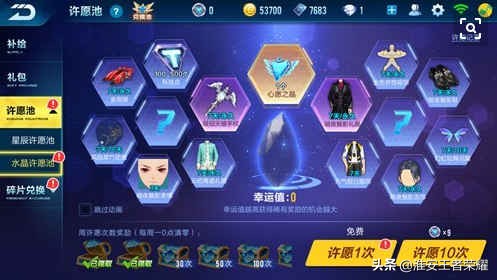 在许愿池中,使用许愿币,每次许愿,都会增加一定的幸运值。