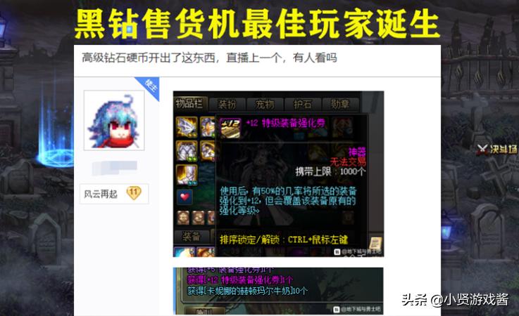 DNF黑钻售货机最佳玩家诞生,抽到50%几率+12强化卷直播强化,结果一发入魂,如何