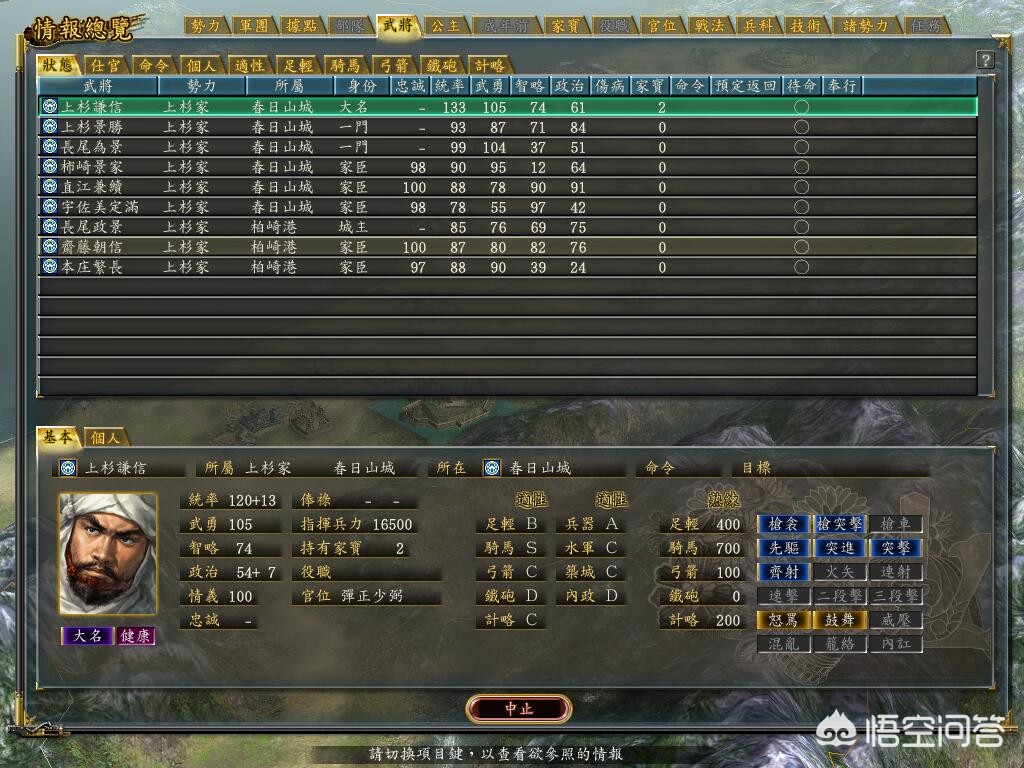 日本战国时期将星灿烂,如梦似幻。《信长之野望12革新威力加强版》正是一款以这段历史为背景不可多得的日本战国SLG游戏佳作,笔者所钟爱的上杉谦信势力于1557年英雄集结剧本开局。该势力优势和劣势都很明显,优势:拥有强势的骑兵科技和武将;劣势:智略、政治型的武将较少,内政开发速度逊于北条家,战场上部队容易被伪报和混乱。