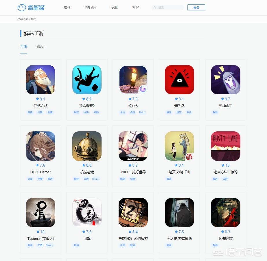 等等,这是是我在偷星猫的解谜类游戏找到的游戏,具体评价的话你可以自己去看一下。