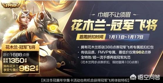 花木兰英雄直降100点卷,售价588点卷。(1月8日更新后-1月17日)