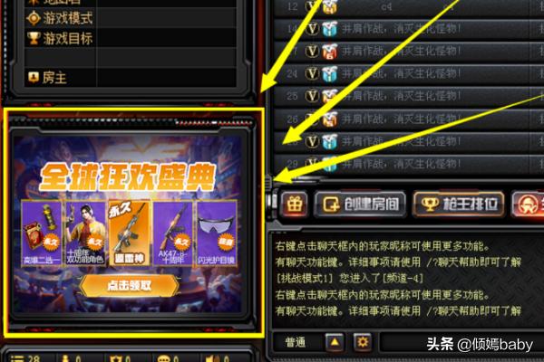 1、首先打开CF穿越火线游戏,登陆账号绑定区服,进入游戏频道,如图所示: