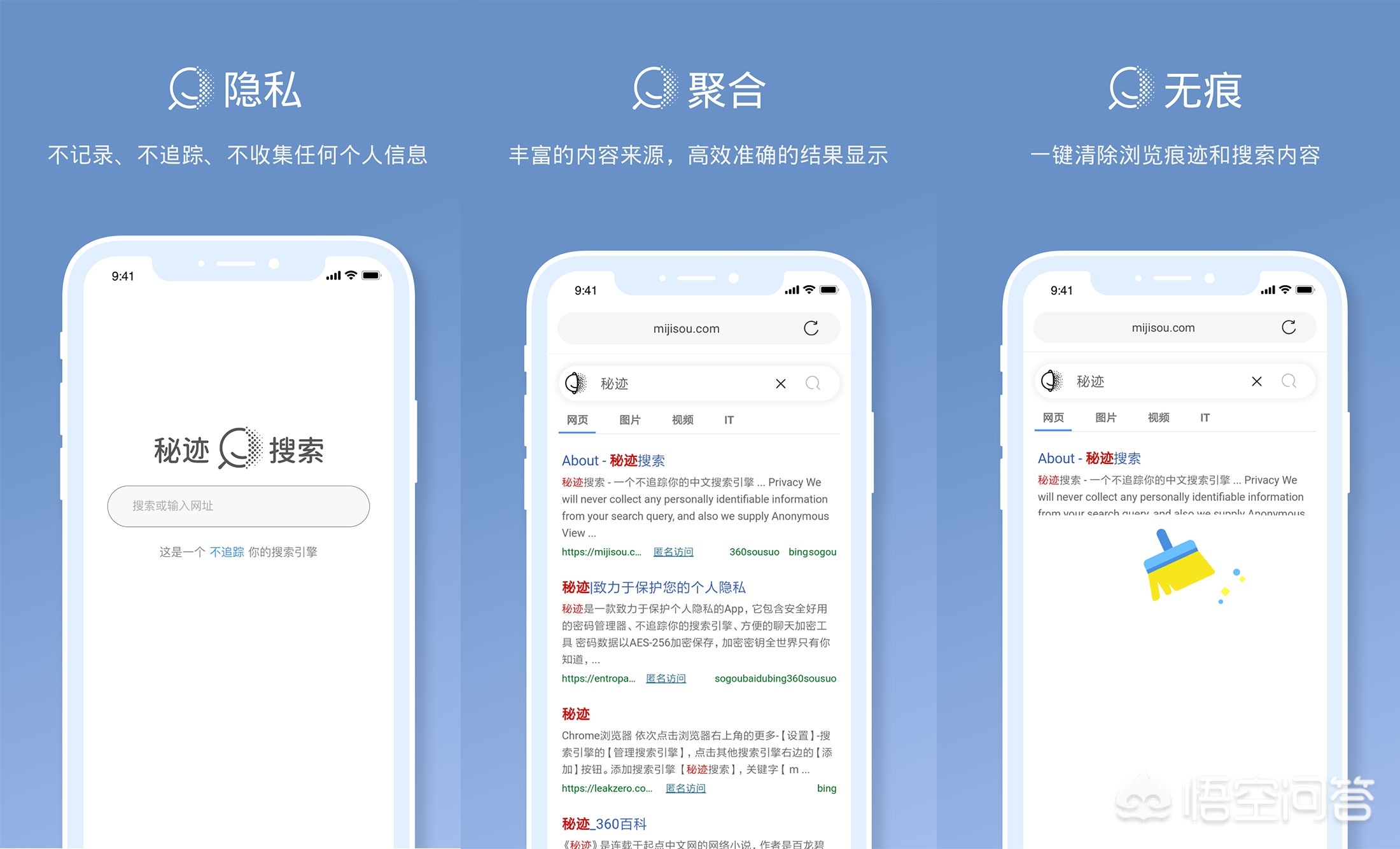 这个不得不提秘迹app了,目前还不怎么出名,但在隐私安全圈里还是有口碑的。秘迹app是集「一个保护隐私、过滤广告的搜索引擎」,「一款安全的密码管理器」,和「一个在其他聊天软件内加密信息的工具」 为一体的app。