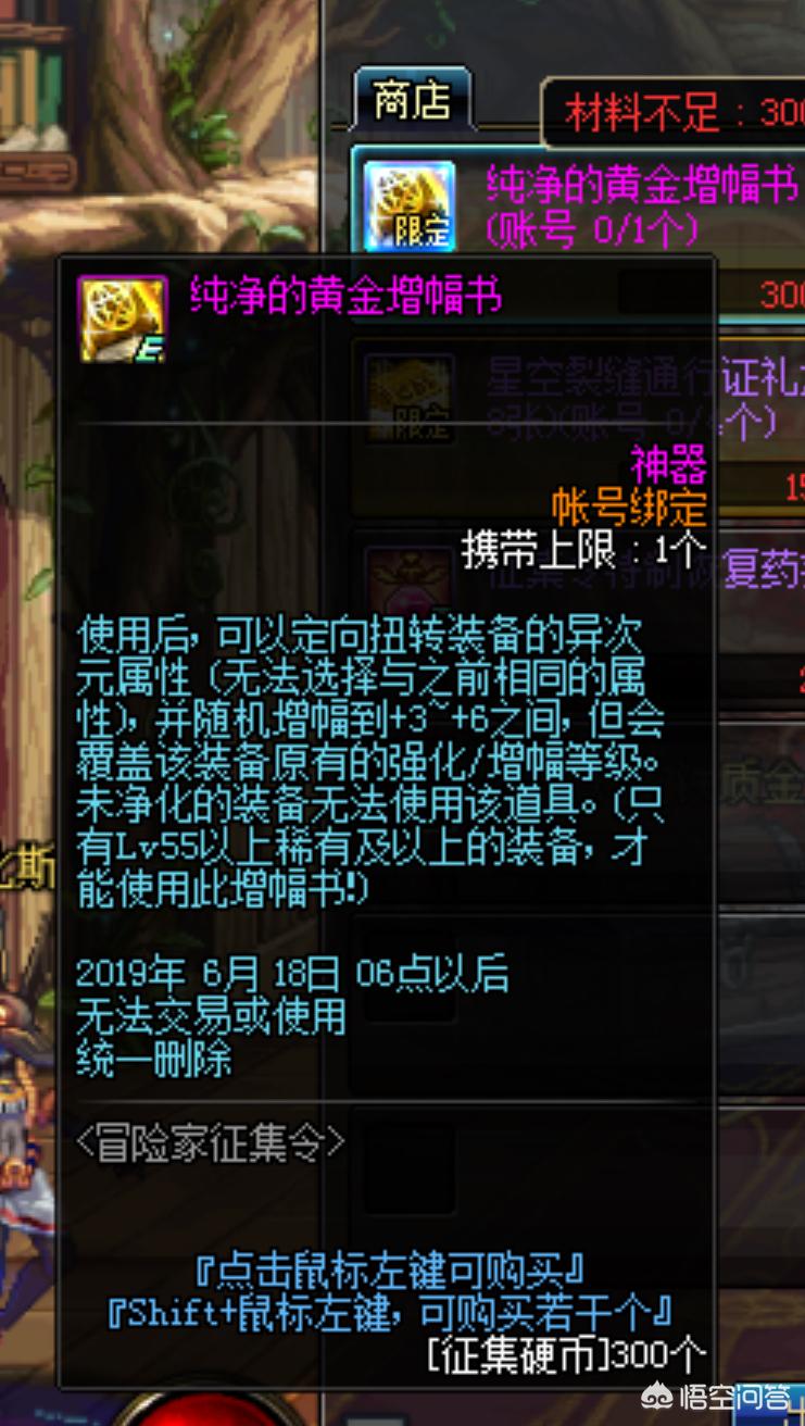 (1)300个硬币兑换纯净的黄金增幅书,对于平民玩家来说,必须肝啊,我的强化10的泰波尔斯首饰迫不及待了,终于可以多一件红字装备了。