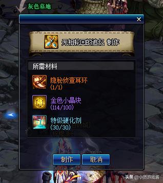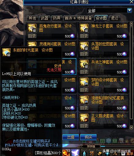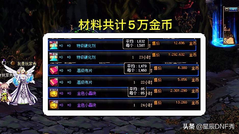 3、有了设计图和胚子之后,我们就可以将传说装备升级成史诗了,这里是我们唯一需要用到金币的地方,升级一件耳环需要100个金色小晶块,和30个特级硬化剂,小晶块不值钱,特级硬化剂1500左右一个,基本就是5w金币的样子!(升级防具的话,需要多用一点点的材料)