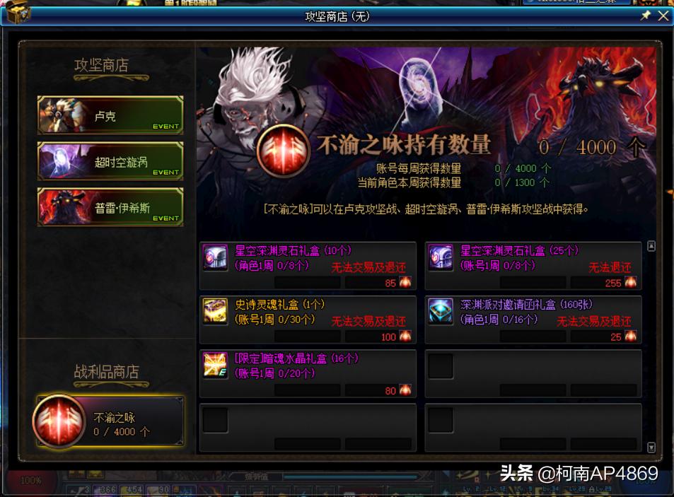 当然收集史诗灵魂还有别的方法,最简单的方式就是打团了,万一爆出个史诗装备,一个史诗灵魂马上就到手了。而且用不渝之咏还可以史诗灵魂礼盒。还有就是刷安徒恩每日、超时空每日,也有几率曝出史诗,分解之后,史诗灵魂就到手了。