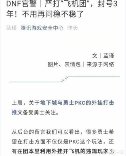 这已经不是我第一次在微信公众号看到这样的信息了,每一次官方说着严打飞机团,严打外挂,但是DNF的外挂从来没有死绝过;甚至发展到了现在,越来越多的飞机团出现在了超时空漩涡之中,数量直逼正常团。