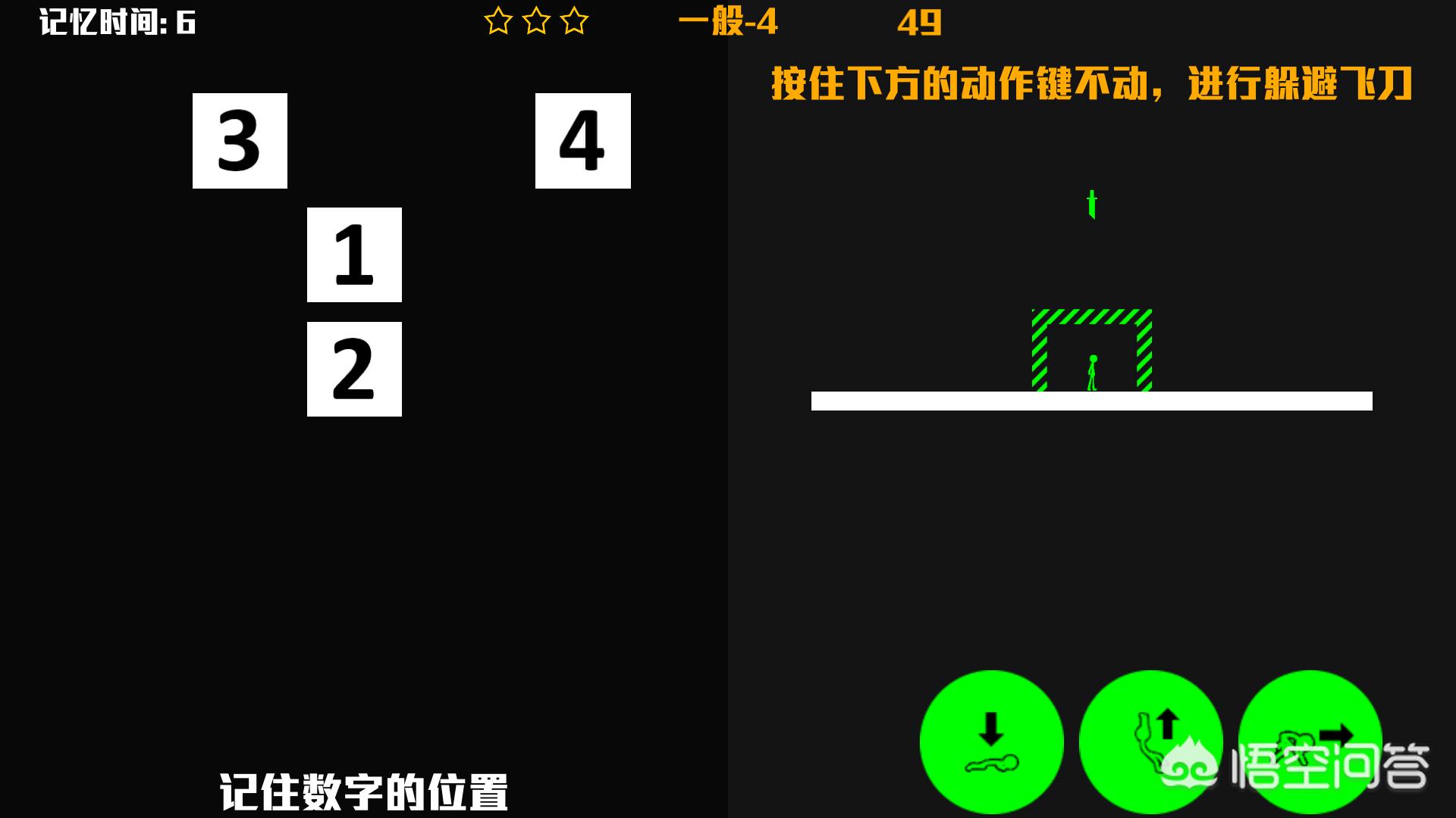 一点都不夸张,这一关的时候需要左边记住数字的位置,同时控制右边的人物躲开匕首。我在这一关凉了很多次。默默的献上膝盖。
