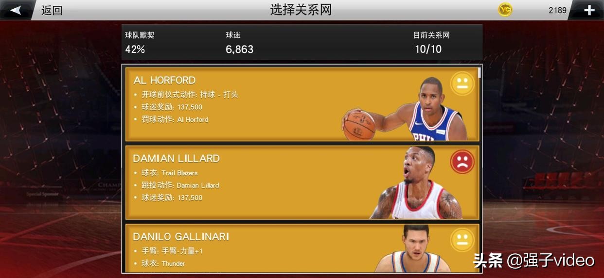 进入辉煌生涯模式之后,在2k导航中找到关系网,进入以后选择适合自己的关系网球员,每个关系网球员建立关系以后,都会为我们提供不同的各种奖励,包括1各种传奇球鞋装备,传奇护腕等各种传奇装备,以及有的关系网会给我们提供各种传奇球员的篮球动作,就像:卡特的折叠暴扣等各种神奇的动作。