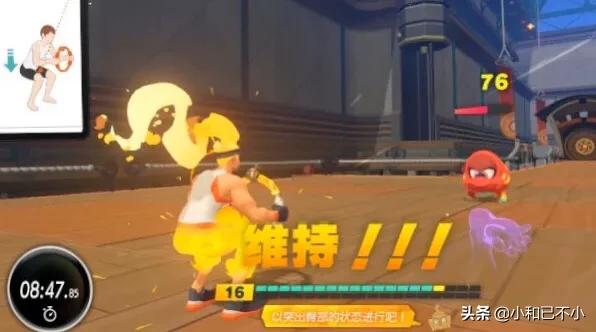 《健身环》将体感运动与动作冒险以及 RPG 元素结合,以一条大腿绑带和一个普拉提圈「Ring-Con」作为外设,配合两个 Joy-Con 作为控制器进行操作。游戏的模式多样,收录动作丰富,「跑酷」加「打怪」的玩法,结合动感卡通的画面、声音效果,为枯燥的运动过程增添了不少乐趣。在《健身环》中,玩家可以通过闯关、游玩小游戏等多种方式来达到「娱乐+健身」的效果。