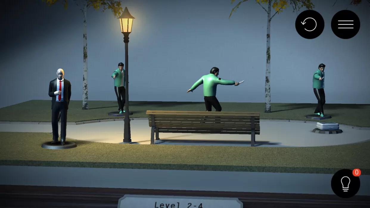 这款游戏和电脑版本的杀手并不一样,算是一款益智类策略游戏。而且是以棋盘的方式来展现,玩家需要移动自己的角色棋子移动或者暗杀敌人。