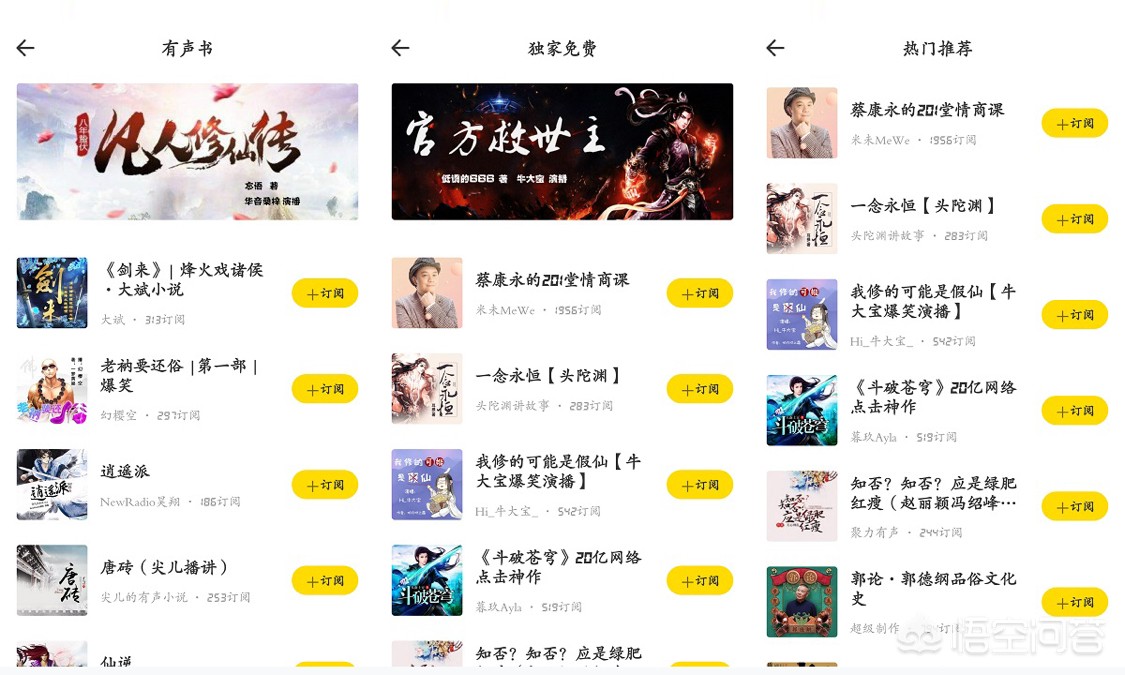 资源挺全面而且没有广告聚合海量资源的播客平台,内含有声小说、段子、相声小品、音乐、新闻、情感、历史、文化、电台广播!