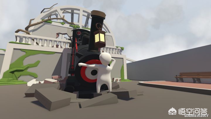 这样的设计让许多在其他游戏中简单至极的互动在《人类一败涂地》的世界中变得既荒唐又困难,比如爬上一段矮墙或把椅子扶正的简单动作都几乎必然的会带来滑稽的失败,任何精确的操作在这里都近乎不可能实现,而把某样东西放在某个特定的位置又处恰恰是许多谜题的基本思路。归根究底,《人类一败涂地》的笑点很多时候这就像是那些让参与者穿上麻烦而古怪服饰的综艺节目,而我们这个软乎乎、胖墩墩的主角无疑是非常吸引眼球的一位嘉宾。