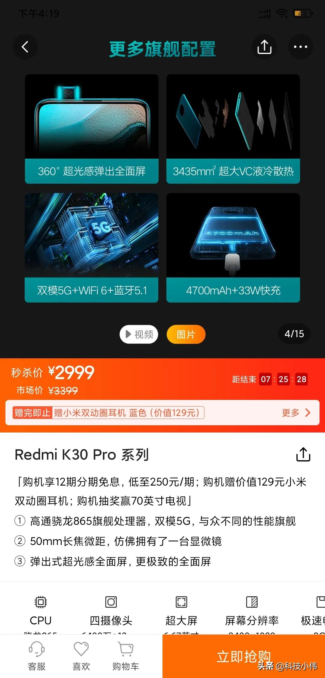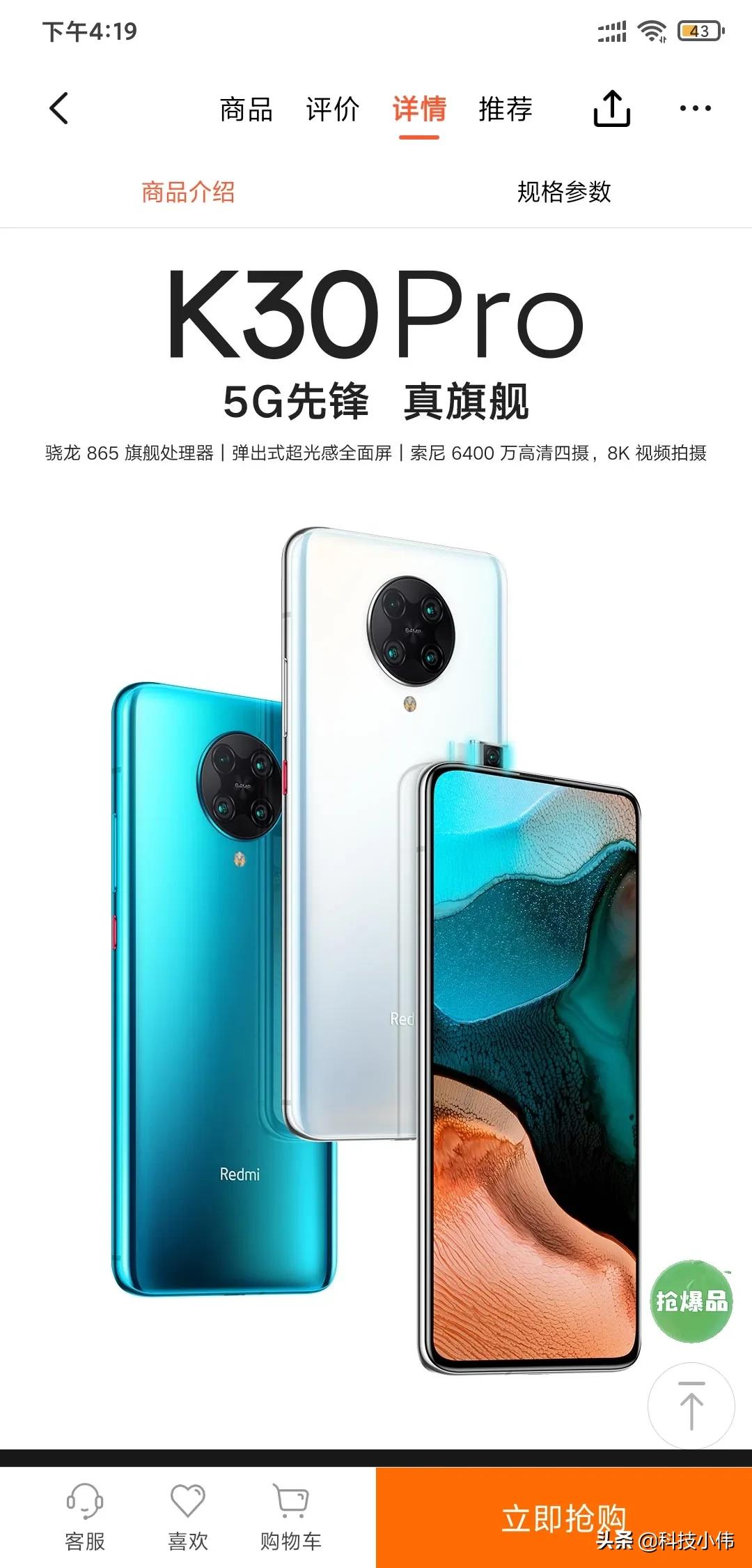 今年五月份,Redmi发布了今年的全新旗舰,Redmi k30pro,该旗舰机采用了今年目前顶级旗舰处理芯片骁龙865,具有强大的性能,而且还配备了LPDDR5和UFS.3.0,使手机的运算处理能力进一步提升,再加上双模5G,WIFI 6,蓝牙5.1,4700毫安的大电池,还有33W快充,全面屏的弹出摄像头,还有MIUI 12的加持都让这款手机成了直面屏中的旗舰必选,一些用户在不喜欢曲面屏或者挖孔屏的时候,这款直面屏的旗舰机,不失为一个很好的选择。