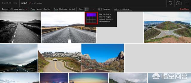 这个网址包含了超过 50 个图库来源,不同于前面提到的 The stocks ,这个网站还可以通过 AI 进行图片搜索,你可以选择需要留白的区域,比如这里技能君选择了最顶部留白(在制作PPT过程中是不是超有用?),还可以根据颜色选图,以及图片是垂直或水平。
