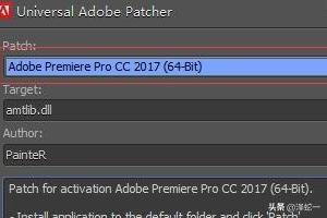 3安装成功之后,就可以激活了,这里我们用到国外大神出的激活工具adobe.snr.patch.v2.0-painter,激活之前先关闭Photoshop,然后打开激活工具,选择Adobe Photoshop CC 2017(64位),如果你的电脑是32位的操作系统,选择Adobe Photoshop CC 2017(32位),这个选项Adobe Photoshop CC 2017和Adobe Photoshop CC 2018都可以使用,然后点击Patch,如果ps是默认安装路径(C盘program files下),则直接激活。