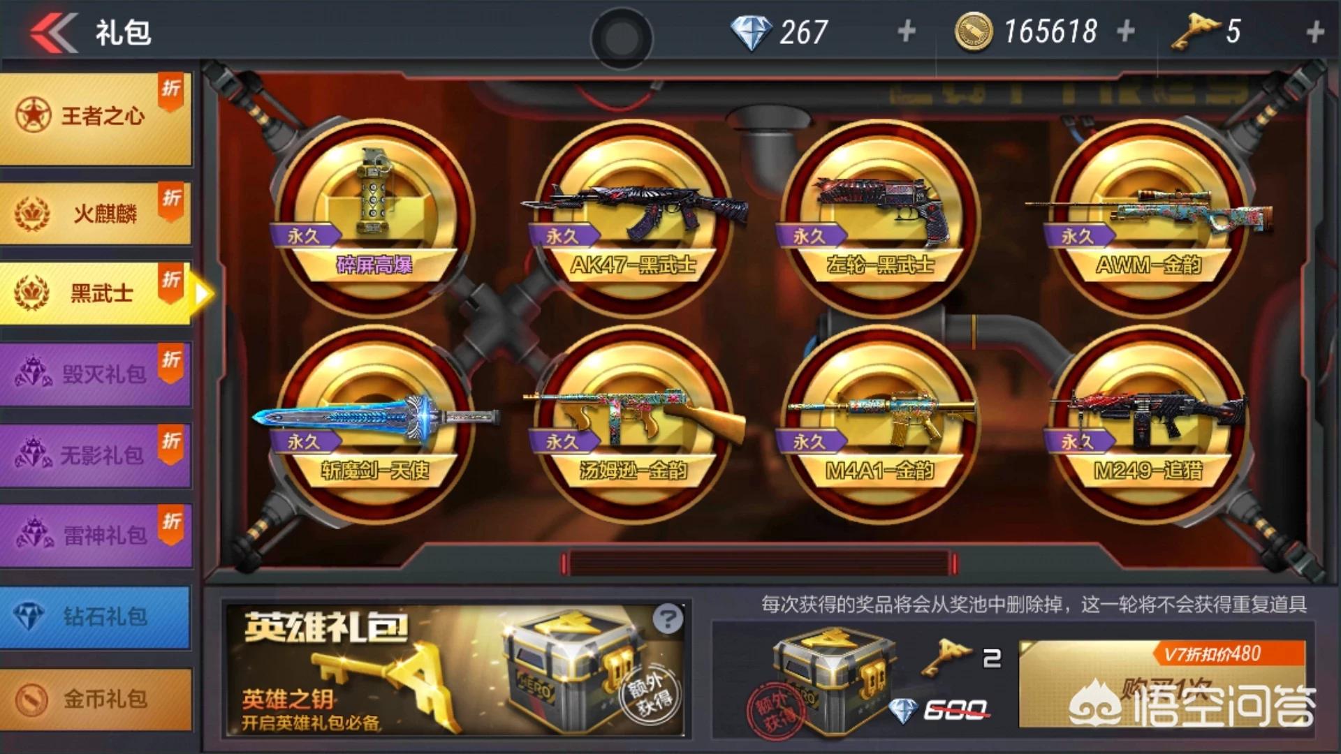 众所周知在CF手游中有三个英雄礼包,分别是:王者之心、黑武士、火麒麟。除了王者之心需要32把英雄钥匙加38200钻石入手,黑武士火麒麟都是需要16把英雄钥匙加15800钻石入手的。由于王者之心太贵了,这里就不会提到王者之心了。