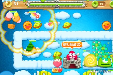 4、尽量快点消除松树,因为里面隐藏着风扇,过几波后怪会不太好打,风扇就可以让怪减速