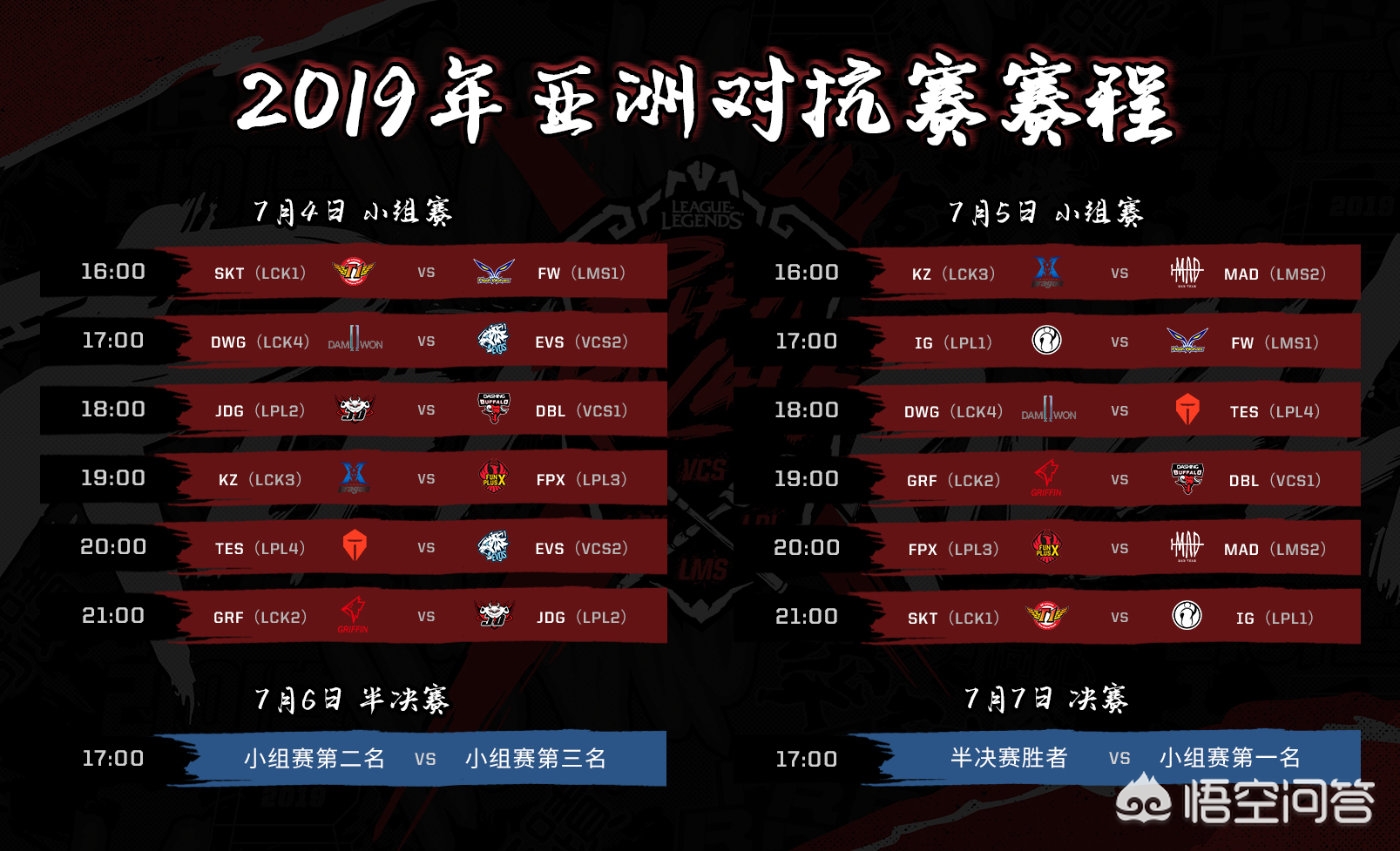 英雄联盟2019洲际赛今日公布了详细赛程,由LCK、LPL、LMS、越南赛区组成的亚洲对抗赛赛程,其中备受关注的LPL赛区四支战队将分别对手夺冠最大对手LCK赛区的四支战队,其中状态火热的FPX对上KZ,Doinb老对手KZ再次相逢,非常值得一看,终结连败的JDG对上GRF,重新找回状态的IG战队对上连败的SKT,TES对上DWG战队,都是非常好看的赛程。