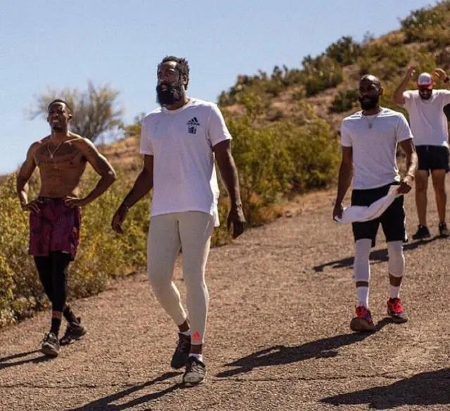 近日,美国媒体在网络上发布了一张哈登的最新照片,照片中哈登身着一身白色短袖和灰色长裤,正在野外和自己的朋友一起训练。因为疫情的关系,哈登想要在健身房中进行有序的训练,也确实存在难度,于是他就选择用登山的方式,来代替健身房中的运动。