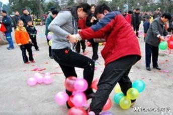 1.脚踩气球。两人一组,各绑气球6个,去踩对方的气球,在规定时间内,剩余气球最多者获胜。