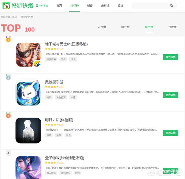 :2:排行榜:展示当下高人气游戏、高期待新游、飙升游戏