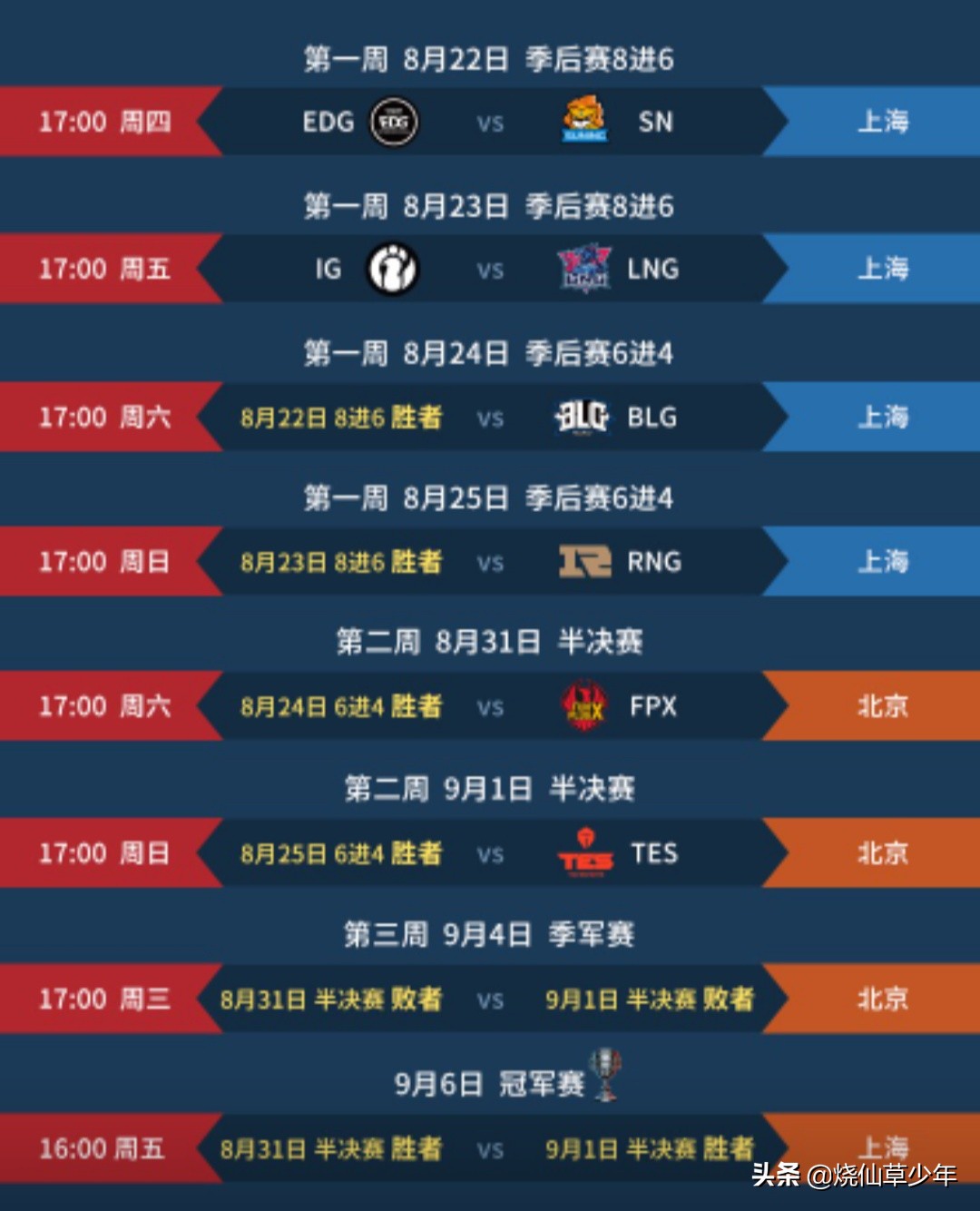 这里LPL季后赛的赛程安排也已经出来了,