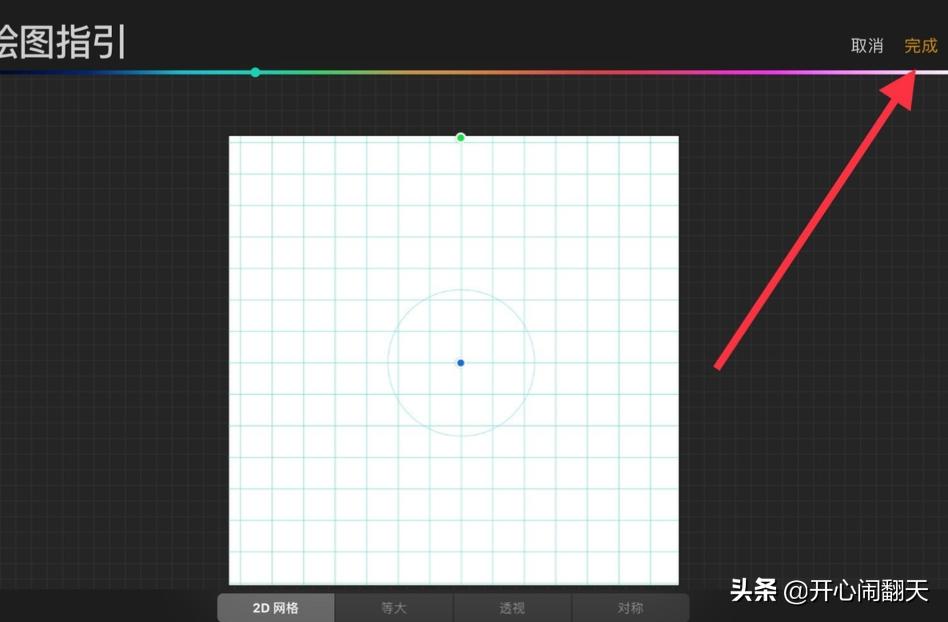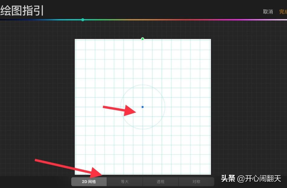 5、来到下一个页面,我们根据自己实际需要选择合适的辅助线,这里我以2D网格为例,可以在下方选择尺寸厚度等参数,我们移动上方的圆点可以调整中心点。
