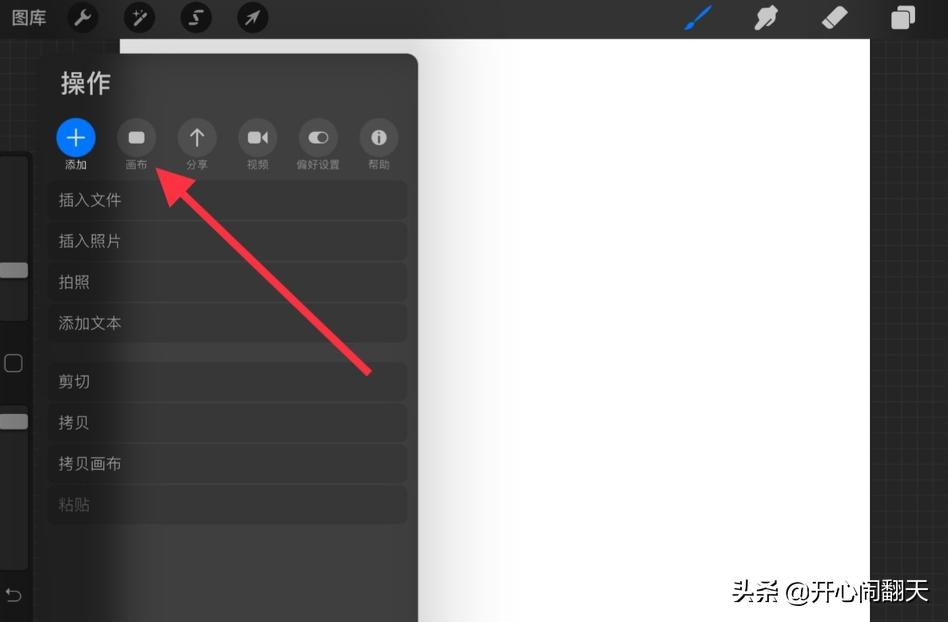 2、在弹出的对话框中,我们再选择画布。