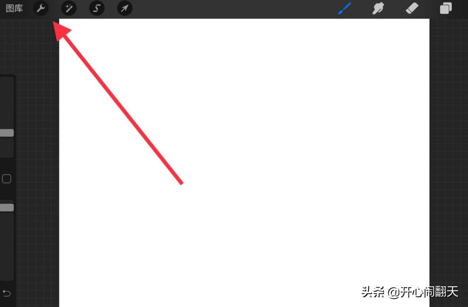 1、我们打开Procreate,新建一个画布,再点击上方的小扳手图标。