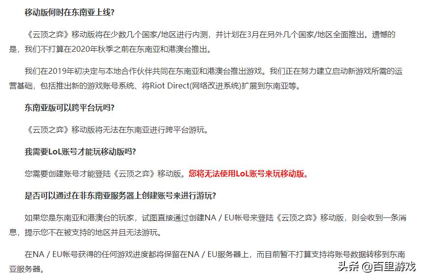 因为需要建立新的游戏运营所需的基础设施,并且东南亚和港澳台地区的玩家无法通过LOL账号登录云顶之弈手游,而是需要注册手游的账号。