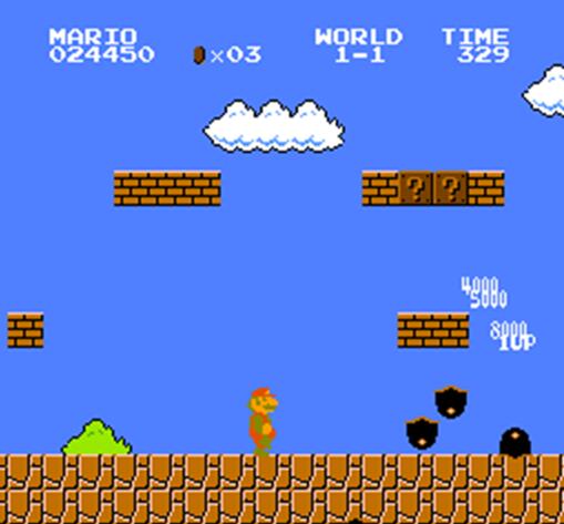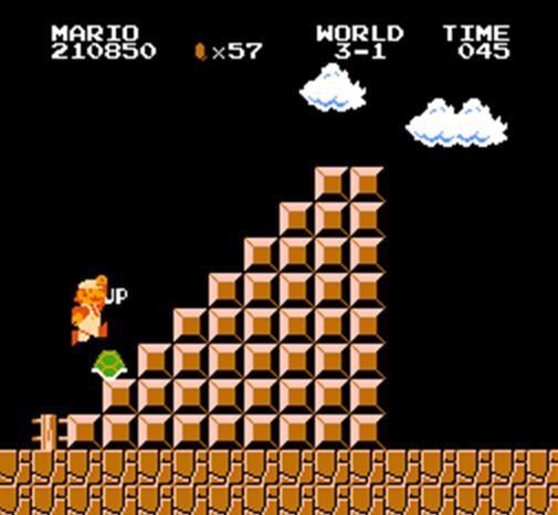 相信当初有玩家遇到过,在3关比较宽阔的场景中,玩家只要踩到一直乌龟,然后踢出去并加速跟上,乌龟就会不停撞人,随着撞的敌兵越多,分数不断翻倍,500、1000、2000、4000、5000、8000、1up、1up、1up………一旦超越8000分,就会开始不停奖励命。