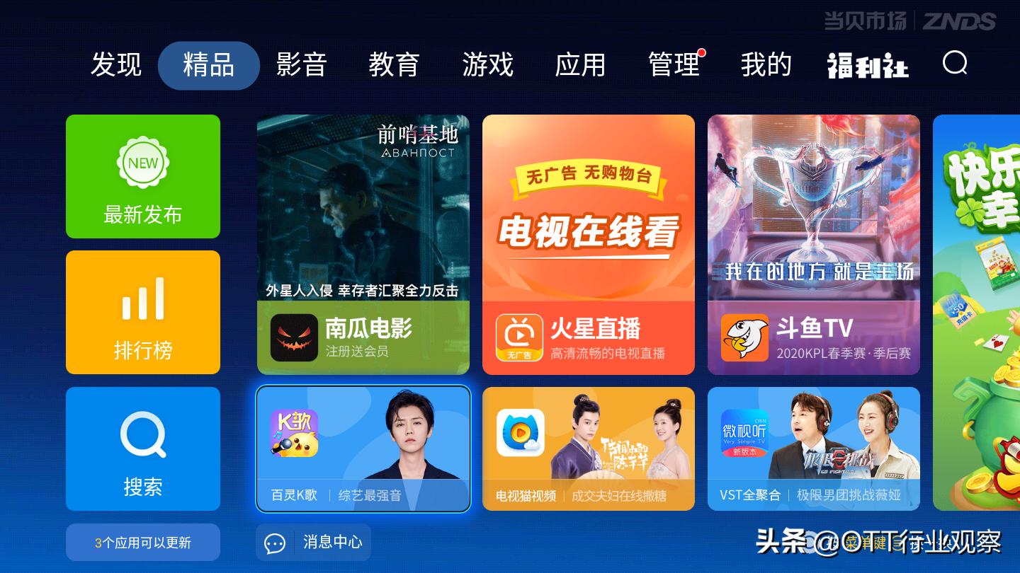 电视家资格很老,直播作用也很牢靠,它致力于创造安卓大屏上最明晰,最流通 最安稳的电视直播软件,其汇聚了来自优酷 土豆 爱奇艺,乐视 搜狐 新浪 腾讯 56网等,优质视频网站的最新大片等高清内容