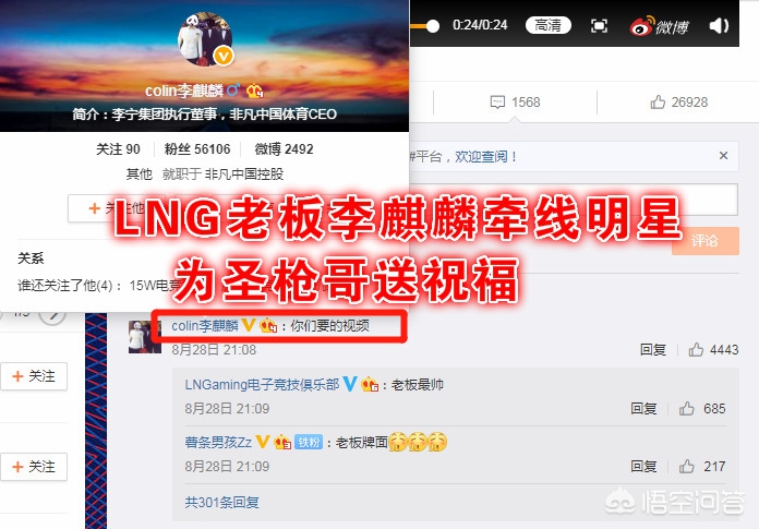 在这班LPL职业选手们中,有着不少都是追星一族,就拿圣枪哥来说他就喜欢宋雨琦,刚在和RNG比赛完后就去女神微博里评论,结果还得到了女神的翻牌。被翻牌后的他也是非常满足了,没想到几天后圣枪哥的生日上,还收到一份更大的礼物,LNG的老板找到了宋雨琦录上了一段鼓励的视频。