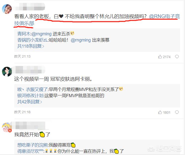 不过从这件事情看,李宁的老总也真是非常大气,对于队员也是非常好。不过这件事情也是引起了RNG粉丝非常强烈的反应,纷纷艾特RNG,叫RNG好好学学,能不能给森明安排一次。RNG的粉丝都知道,小明特别喜欢李允儿,每次林允儿的一点小绯闻,小消息,小明看了都会难受很久,如果RNG老总真的安排了一次,小明恐怕真的是会疯狂。