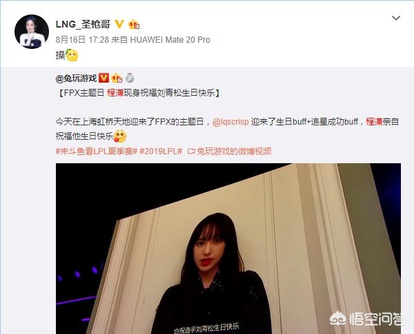 这件事不难让人想到在FPX辅助刘青松在生日的时候收到了女团成员程潇的祝福,圣枪哥在知道了之后柠檬属性爆发在微博留言爆了粗口,让不少网友都笑得不行,但是今年这个幸福轮到自己了也是很开心,只能说真的有牌面!