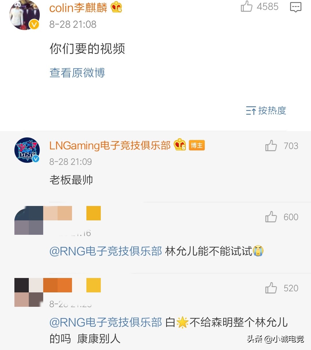 这件事让人联想到了之前FPX为了辅助刘青松联系到了他的女神程潇,可见俱乐部对于选手的关爱十分到位!另一边,RNG战队的辅助一直都是林允儿的小迷弟,可是允儿这样咖位的明星不是一般人能够请得动的,还要看小明能不能够用表现征服俱乐部高层来满足自己这个心愿!