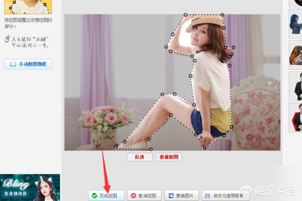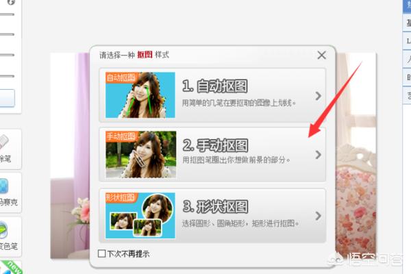3、因为背景不是单一的,选择手动抠图,如下图所示。