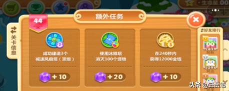 1.本关任务是要求玩家至少要建造出3个及以上的顶级风扇塔,并且用冰锥灭掉100个怪物。而实际上这关并不受控,因为建造的攻击塔是随机的。