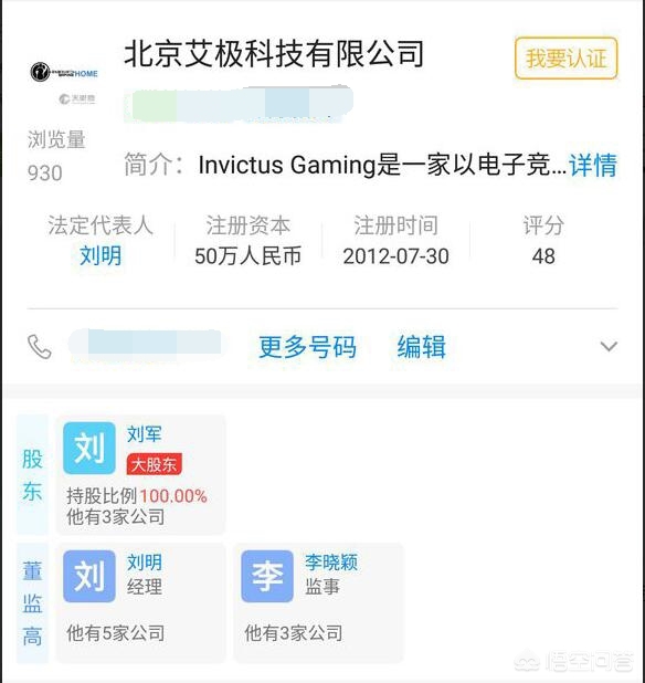 从公开资料中,我们可以查到IG战队的所属公司叫“北极艾极科技有限公司”,股东刘军100%持股,注册时间是2012年7月30日。这些资料都是公开的可以随意查询,大家看到这里肯定会很奇怪,IG的老板不是王思聪吗?为什么是刘军持股?这就涉及到代为持股,合法规避风险的问题了,这里咱们不多说。那么又有小伙伴们要问了,为什么公司的注册资本只有区区50万元呢?这就涉及到许多方面了,囧王者慢慢来分析: