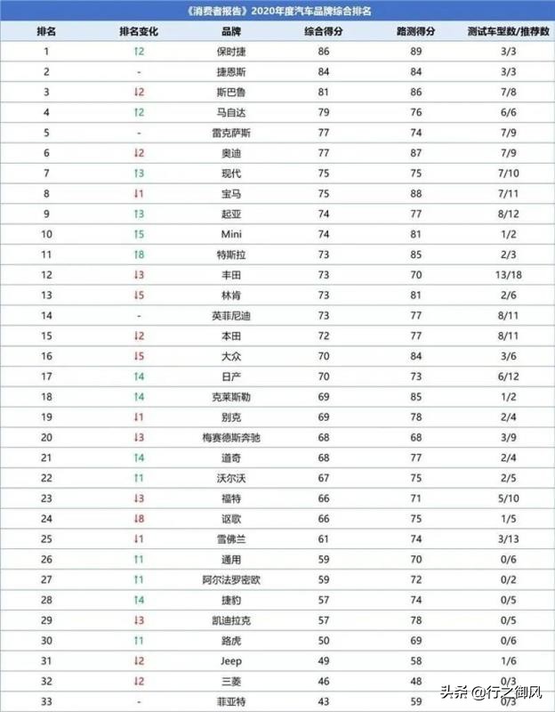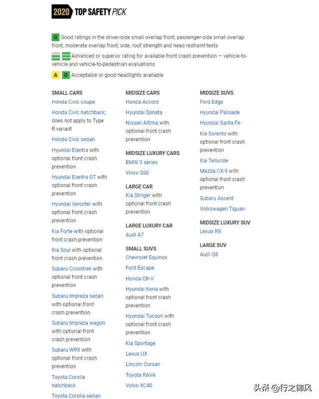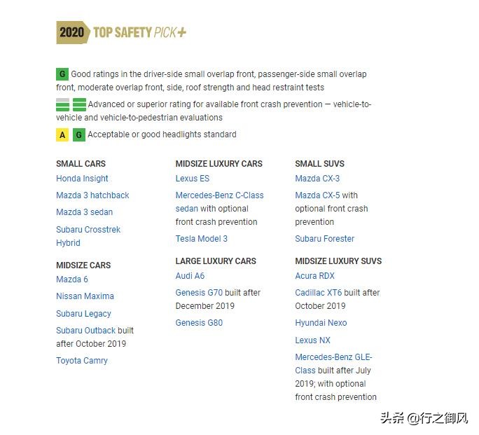 美国IIHS根据2020年的测试结果进行了一个排名,特别凸显出马自达和现代汽车在汽车安全领域获得的亮眼成绩,在Top Safety Pick+推荐的23款车型当中,马自达一个品牌就占据了5个奖项,分别是马自达3两厢/三厢、马自达6、CX-5和CX-5,此外CX-9还获得了Top Safety Pick的推荐,按照马自达的在售车型来看,上榜比例十分之高。马自达是车型上榜比例最高的品牌;