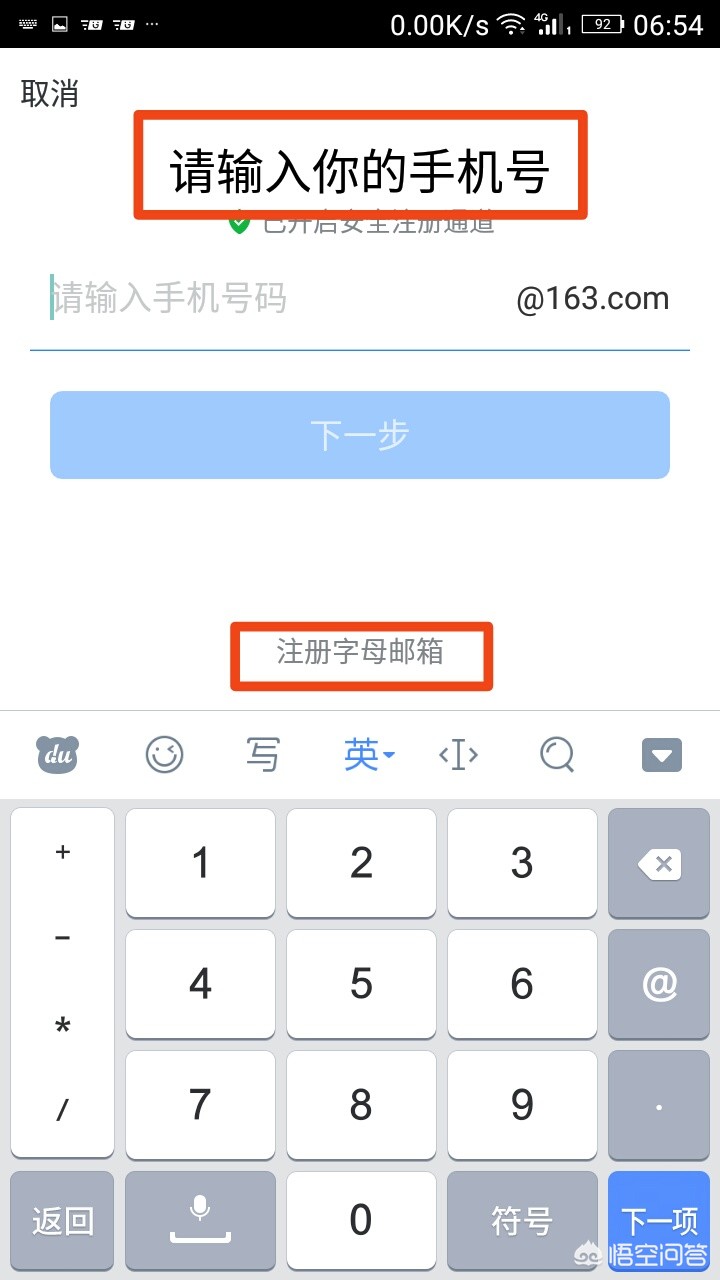 在打开页面就可以注册新邮箱。注册邮箱有两种方法:一种,用自己的手机号注册。手机号只能注册163邮箱。看下图