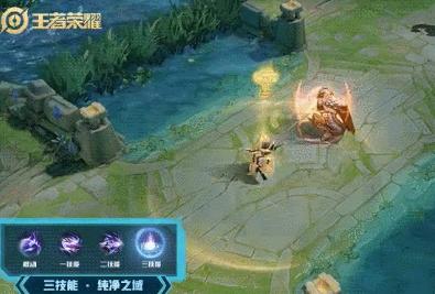 伽罗释放二技能,金色的弓开始蓄力,然后极速射出,一道旋转的箭影在敌方英雄身上穿过,命中远处的目标!