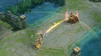 伽罗释放一技能,金色的箭簇射向敌方英雄,划出一道金光!