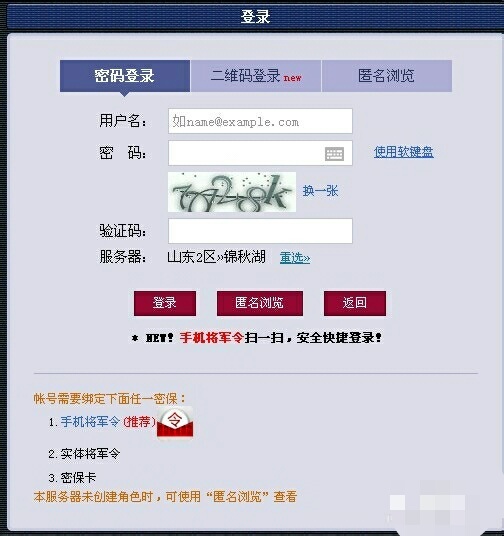 3.输入自己的账户名和密码以及验证码,并确认服务器没选错之后点击“登录”