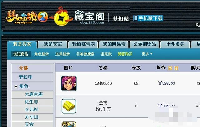 6.现在我们就登录藏宝阁了,大家可以自由买卖东西了