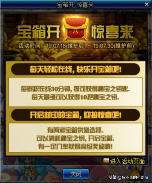 策划做这个活动的目的就是想让大家在线,说实话你还不如再在右边的箱子里加个紫色徽章自选宝箱,几率稍微大一些,我相信在线率会更高。你说我辛辛苦苦站两天给个随机紫徽章我,我真的以后没有啥欲望占满一天的街了。